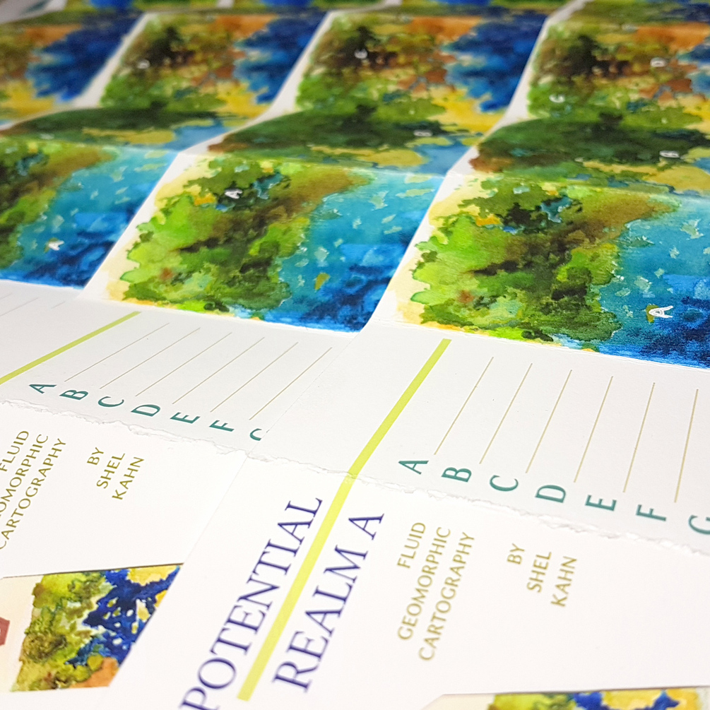 Potential Realm A is a prototype of an accordion style map zine, printed at giclee quality on heavy fine art paper. Only a few exist but they are ready to be keyed and played on, or, carefully hung on your wall!