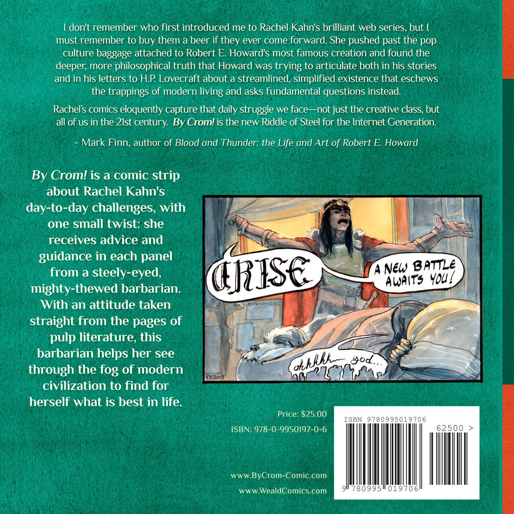 By Crom! is a comic about how a stoic barbarian, inspired by the finest barbarians of literary history, helps the author deal with the challenges of modern life, collecting all the public and secret updates of the webcomic, which ran for over two years. Now By Crom! is finally available in a single, definitive volume.