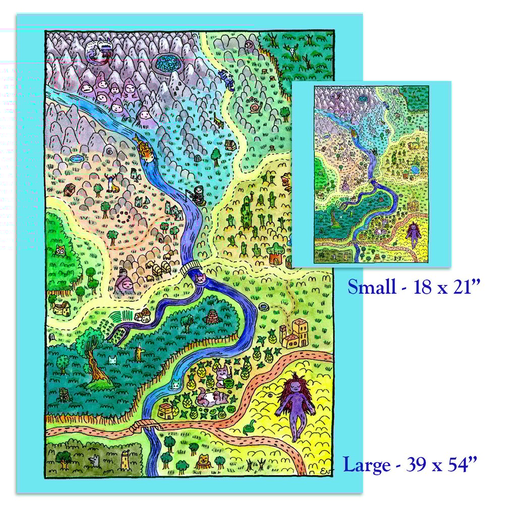 Available in large and small sizes, ideal for wall tapestries, gaming table maps, and playmaps for the smaller adventurers in your life!